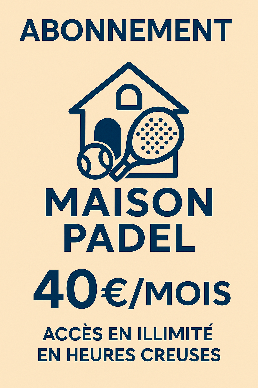 Avec l’abonnement Mensuel Maison Padel, vous profitez d’un accès illimité en heures creuses. En bonus, nous vous offrons un jeu de balles pour démarrer vos matchs sans attendre.